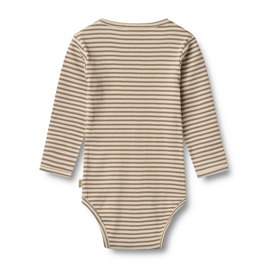 Romper lange mouw Berti -Biologisch katoen - Stone stripe - Wheat