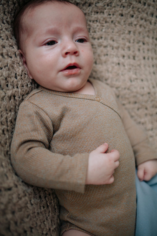 Overslag romper Lasse - Biologisch katoen - Knitted combo blue - Riffle Amsterdam