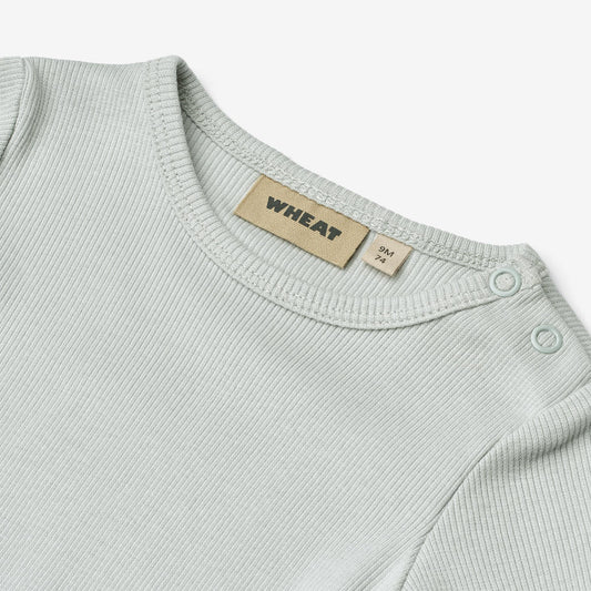 Wheat - Rib Body S/S Timo - Romper - Soft blue - Biologisch katoen