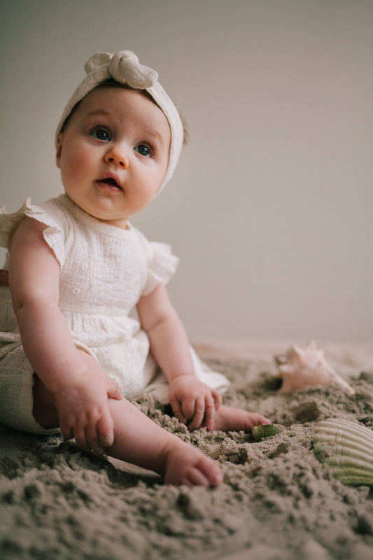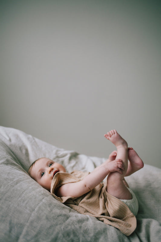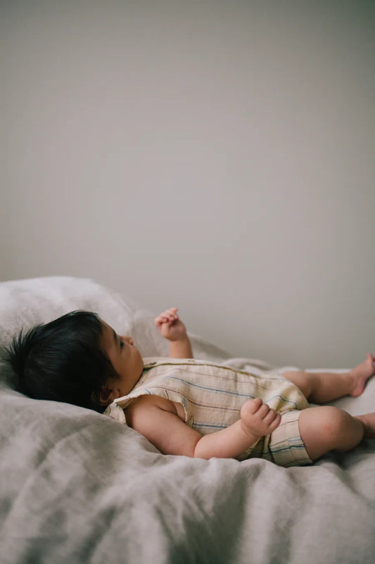 Muslin jumpsuit romper - Muslin Frill Romper Stripe Pebble - Biologisch katoen - Garbo&Friends