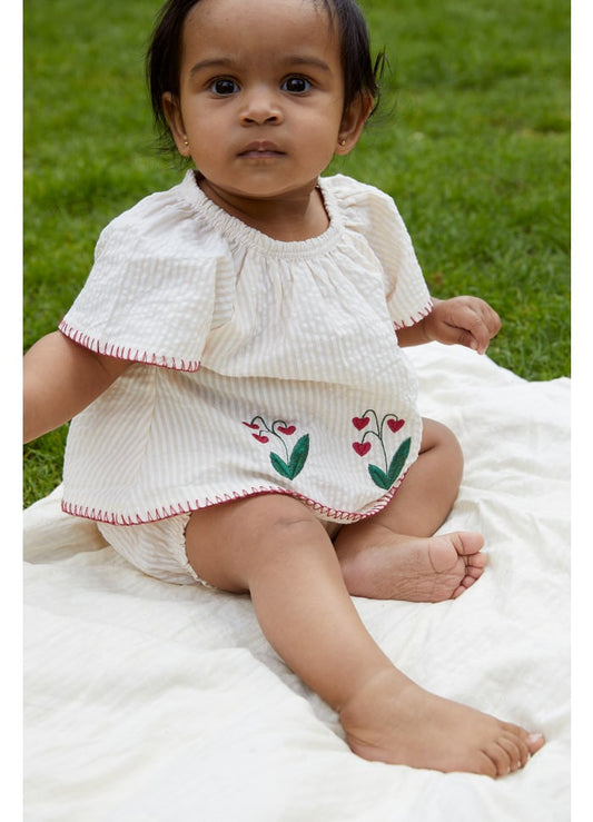 Copenhagen Colors - Seersucker Baby Set with Embroidery - Baby set borduurwerk - 100% Biologisch katoen