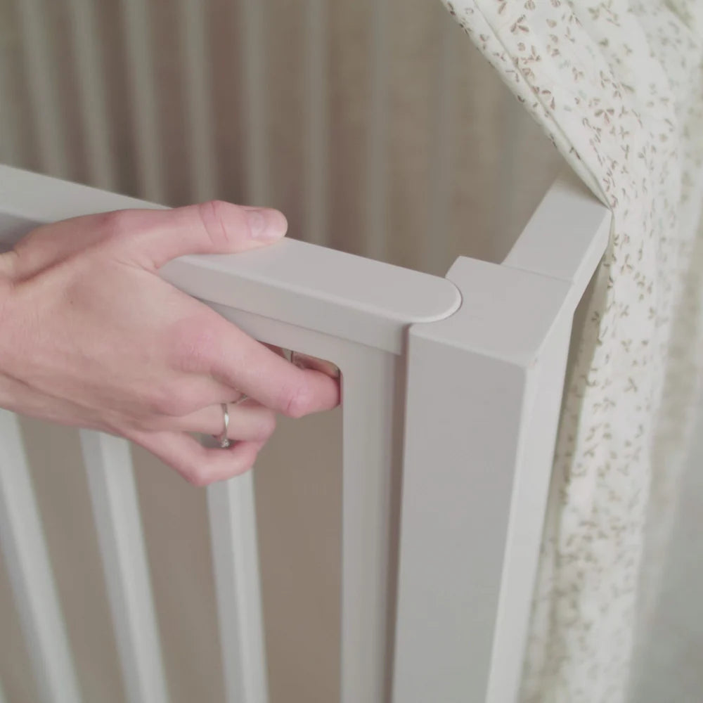Hierdoor kun je het bed eenvoudig opmaken en je kindje gemakkelijk in en uit bed tillen. Later kan het worden omgebouwd tot peuterbed. -