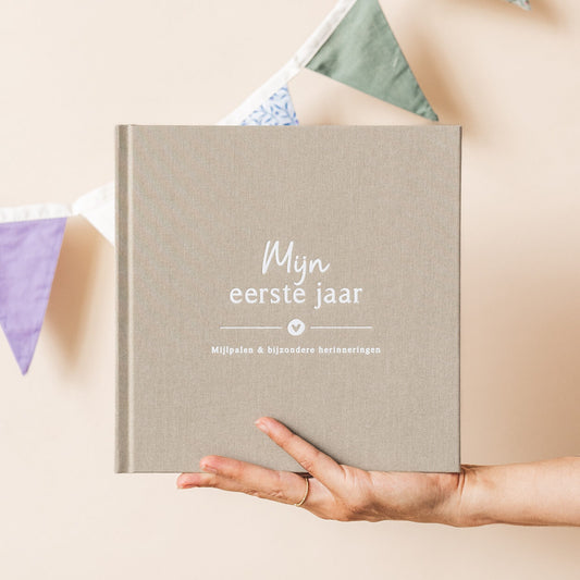 Baby invulboekje - Mijn eerste jaar – Linnen taupe - Fyllbooks