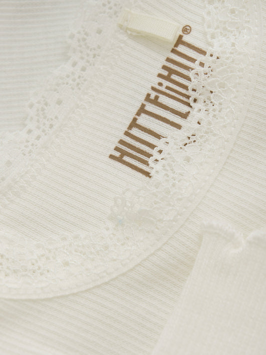 Top lange mouw - Modal katoen - Tofu/off white - Huttelihut
