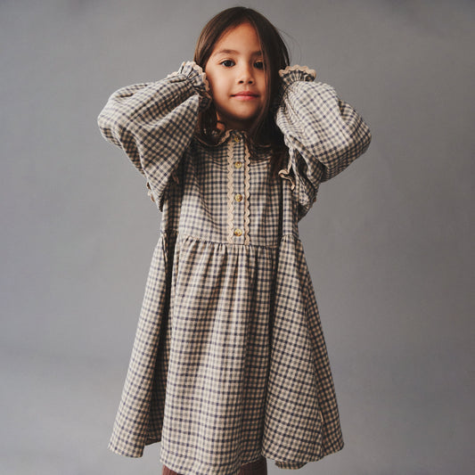 Jurk Alissa - Biologisch katoen - Blue check - Wheat