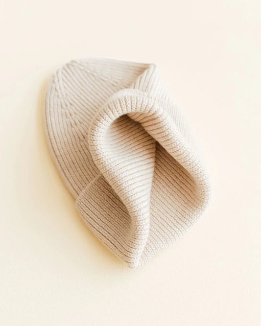 Gebreid mutsje - Fonzie Newborn - Merino wol - Sand - HVID