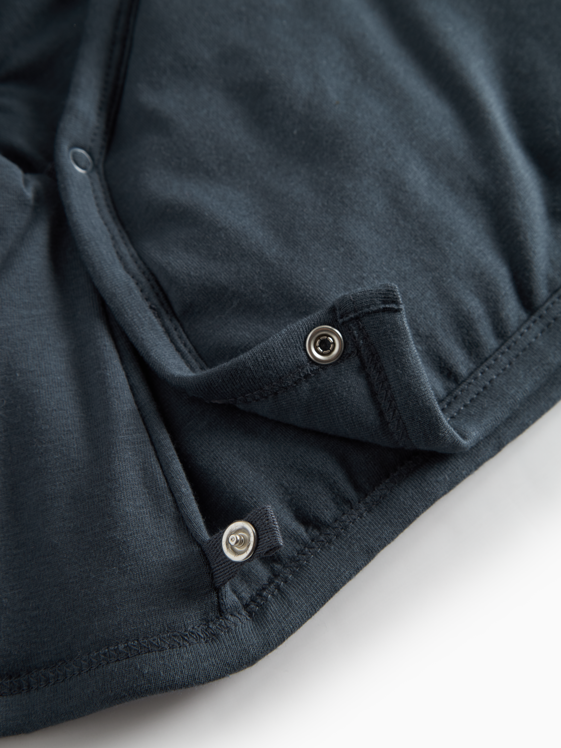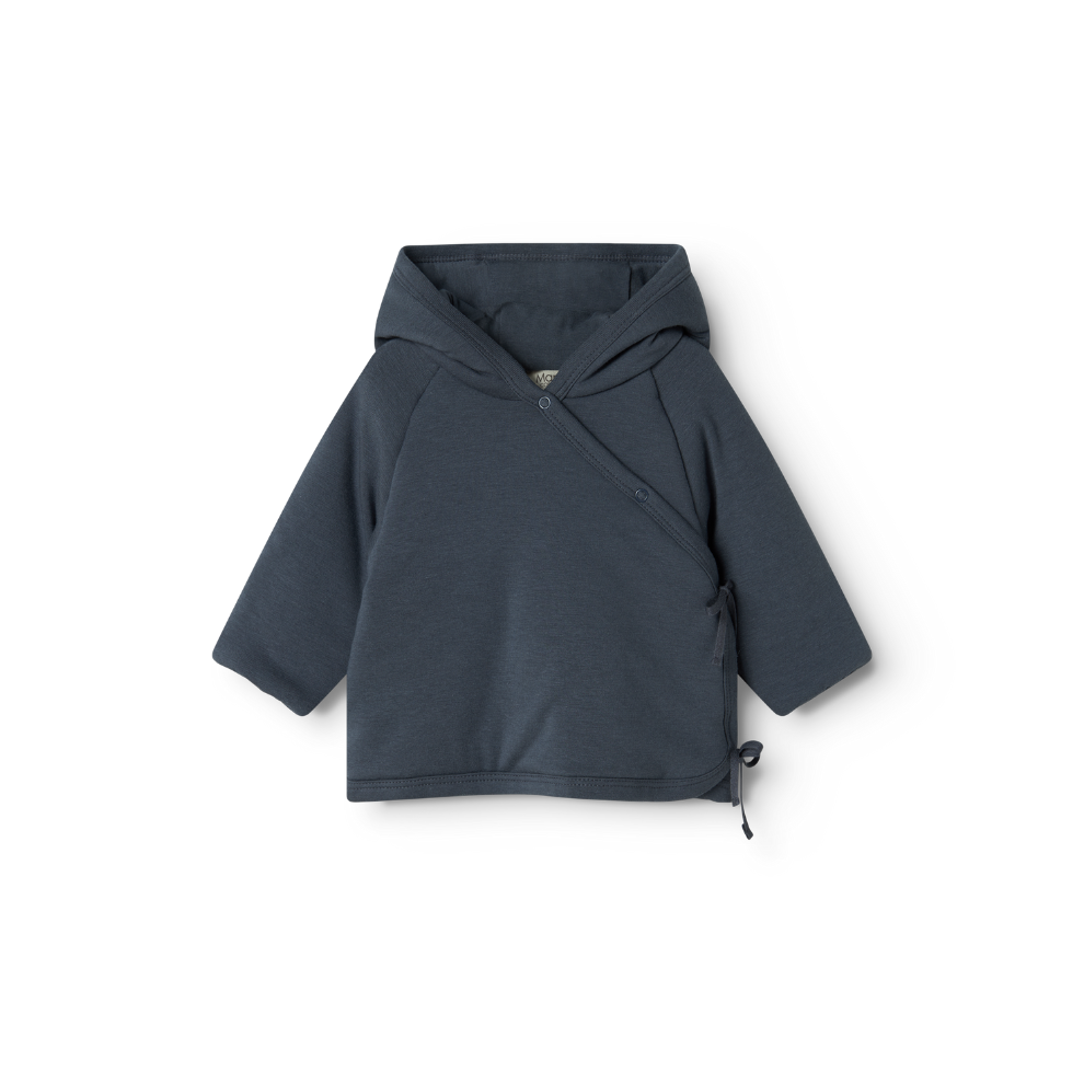 Het jasje is vervaardigd uit een zorgvuldig geselecteerde mix van Modal en biologisch katoen, wat resulteert in een superzachte, ademende en duurzame stof. Perfect voor de gevoelige huid van pasgeborenen – geen kriebels of irritatie, alleen pure zachtheid.