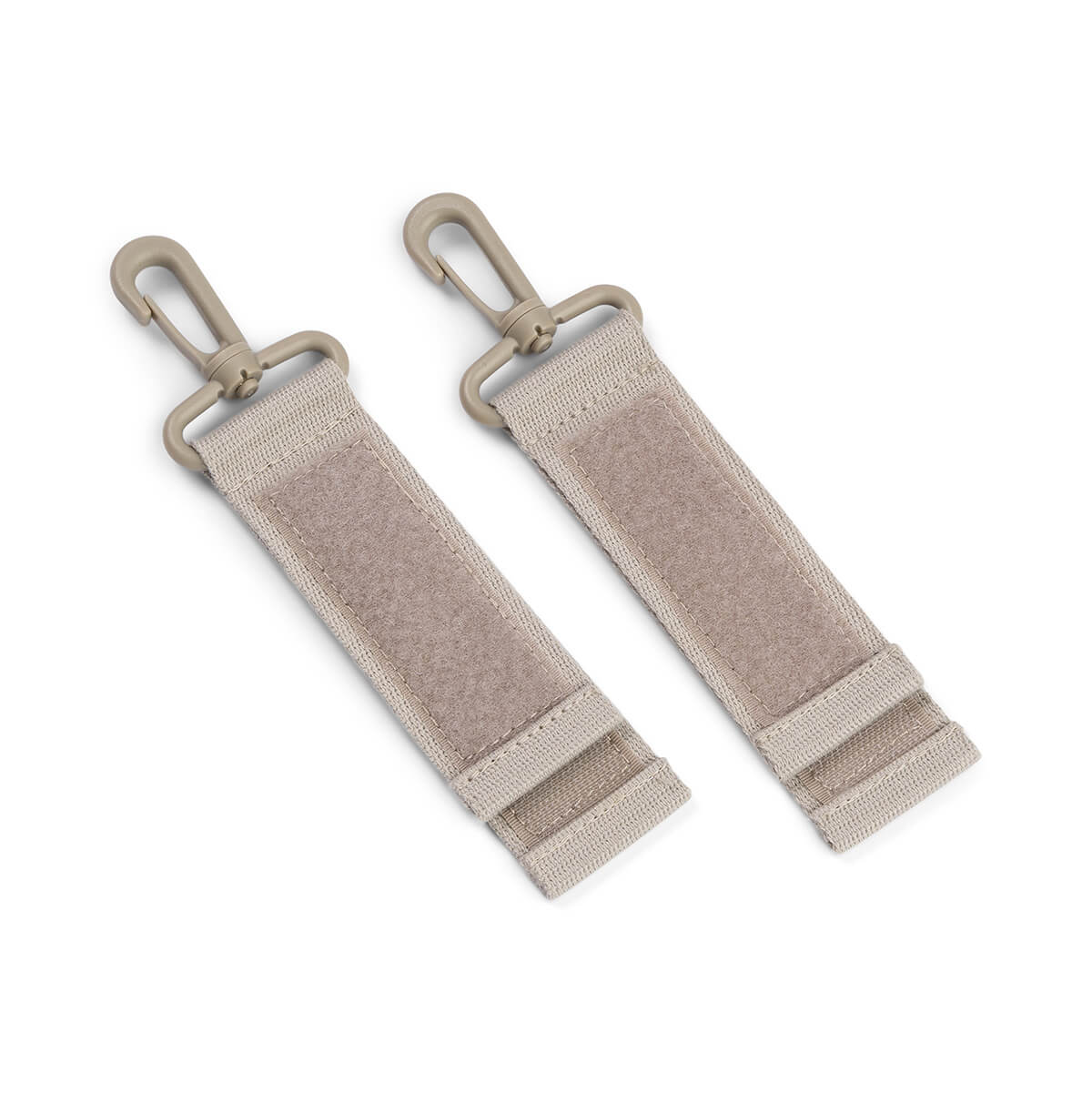 Gewatteerde tas in zachte zandkleuren met kenmerkende strepen op de haken voor de kinderwagen