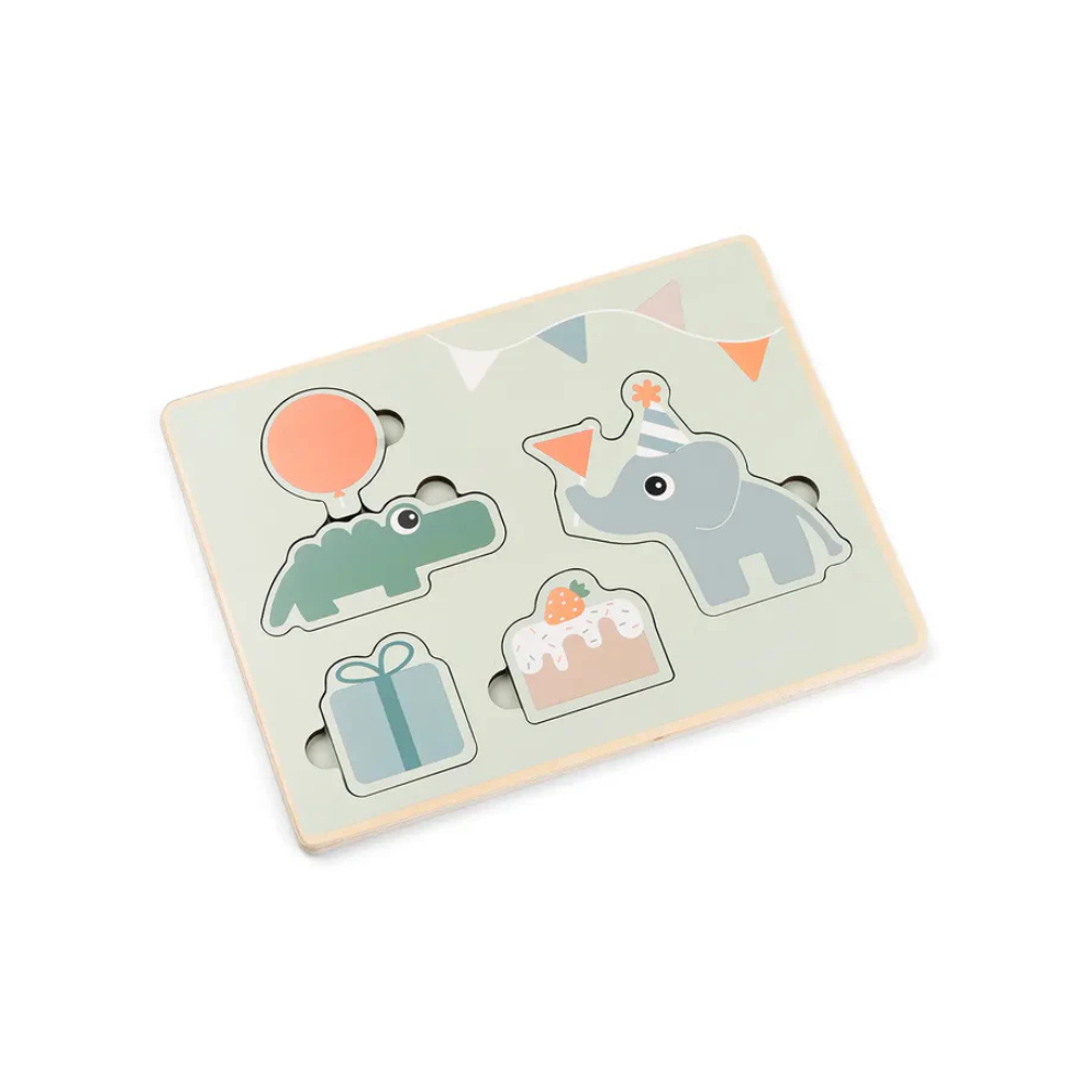 Tijdens het spelen traint je kindje spelenderwijs de fijne motoriek en de pincetgreep. Tegelijkertijd stimuleert de puzzel het logisch denken en het probleemoplossend vermogen. Laat je kleintje zijn of haar fantasie gebruiken en eigen verhaaltjes bedenken rondom het feestelijke tafereel. Leren en spelen gaan hier moeiteloos samen.