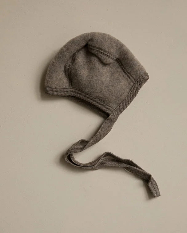 Een dons zacht mutsje met lange koorden gemaakt van wol fleece. De koorden kun je op de borst van je baby strikken waardoor het mutsje goed blijft zitten. Een mutsje dat het hoofdje van je baby beschermt als je naar buiten gaat. Wol fleece is zacht, dik, luchtig en licht.