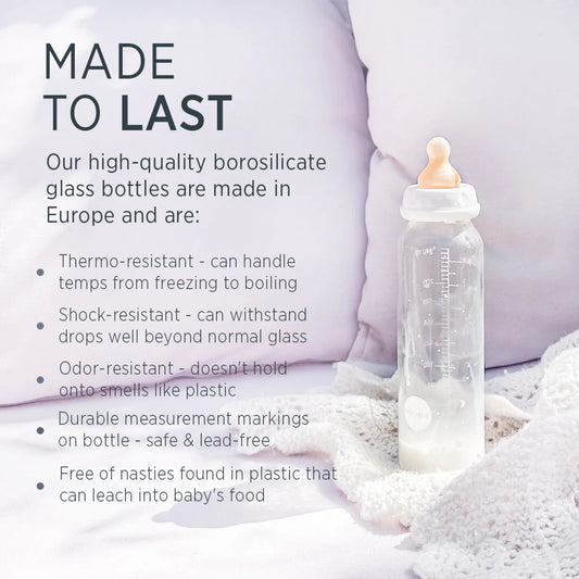 Glazen babyfles - Natuurrubber - Standard Neck Baby Bottle - 120ML - 0-6 maanden - Hevea