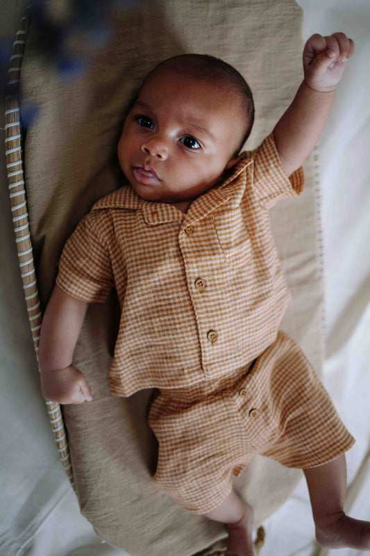 Kort broekje Zuri - Linnen/Katoen - Square Brown/Bruin - Riffle Amsterdam