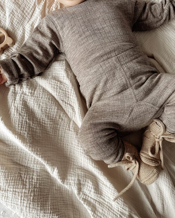 Merinowol is temperatuurregulerend: het houdt je baby warm op koelere momenten en voelt juist luchtig aan wanneer het warmer is. Dankzij de soepele en elastische structuur beweegt de legging moeiteloos mee, waardoor je kleintje vrij kan bewegen zonder in te leveren op comfort.