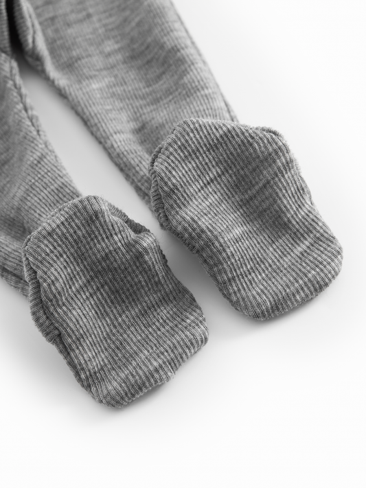 Broekje met voetjes Pixa - Wool rib - Merinowol - Grey Melange - MarMar Copenhagen