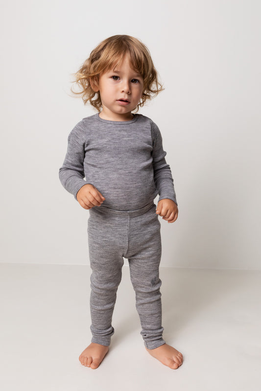 Broekje zonder voetjes Piva - Wool rib - Merinowol - Grey melange - MarMar Copenhagen