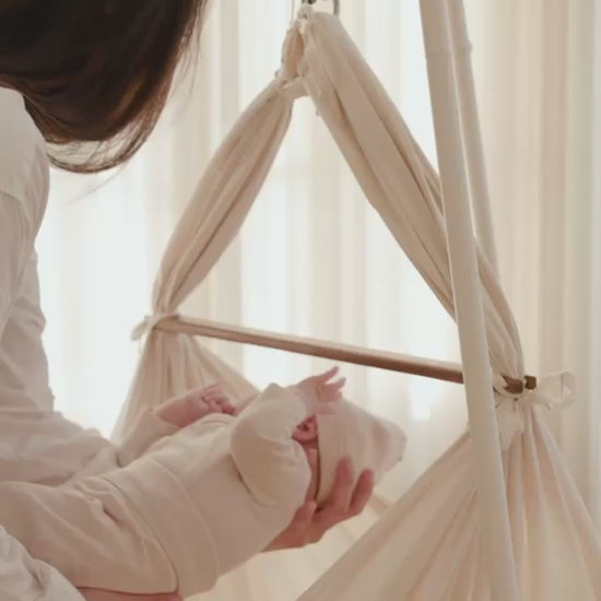 De babyhangmatten in nature en stone worden geleverd met een gratis Cloud die naar wens kan worden bevestigd of verwijderd.